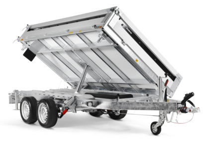 Ein robuster 3- Seiten – Kipper, perfekt für den Unternehmer mit hohen Ansprüchen an Benutzerfreundlichkeit und Multifunktionalität. Das einzigartige Leichbaudesign bietet eine erhöhte Nutzlast. Sein hoher Kippwinkel erleichtert das Entladen von Schuttgütern wie Kies und Erde. Die Serie TT5000 ist für Rampen vorbereitet und wird mit 8 versenkbaren Verzurrösen und einer Belastung von jeweils 800 daN ausgeliefert. Sie können die für die Arbeit erforderlichen Maschinen und Geräte problemlos verladen. Die Bordwände sind aus Aluminium und abklappbar. Pendelbordwand und vieles mehr ist serienmäßig. Vereinfachen Sie das Handling, indem Sie Ihren Anhänger mit einer Funk- oder Smartphone – App per Bluetooth – Fernbedienung ausstatten statt der serienmäßigen kabelgebundenen Fernbedienung. Viele Zubehörteile der Hochlader Serie 5000 können verwendet werden und es gibt zusätzlich speziell entwickeltes Zubehör für die Serie 5000. Die Bilder dienen nur der Illustration und können genannte Sonderausstattungen zeigen.